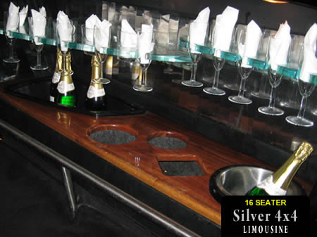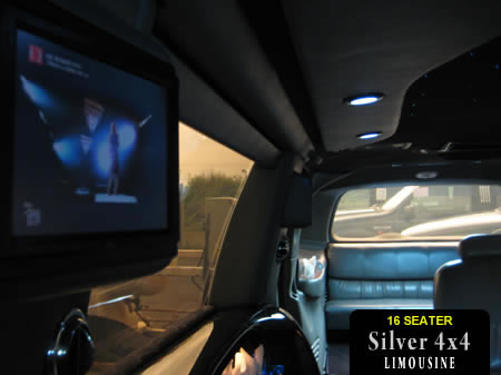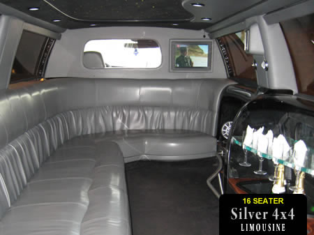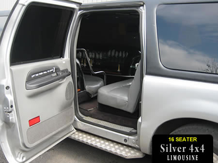 This 'Hummer' style 4x4 includes all American SUV styling and 16 seats with full limousine interior.