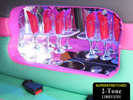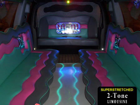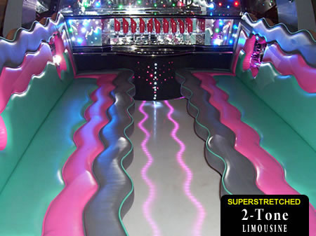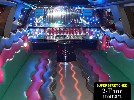 From stag weekends to 21st birthday parties, our custom built Two Tone 4x4 is a real head turner and has to be one of the most colourful limousines available in the UK! Licensed for upto 16 passengers per journey our exclusive Two Tone 4x4 style 'Hummer' limo is perfect for any occasion in Swansea, Neath or Port Talbot! The luxurious and colourful passenger area includes a discofloor with underlights, multi-colour disco lighting with laser system, 4 TV units with a DVD player, audio system, 4 sub woofers, custom designed three tone leather seats, decorative bar area, ice buckets, privacy divider and tinted windows. Great for all ages, all occasions and all journeys!